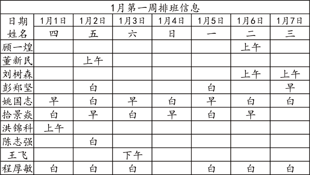 门诊安排通知如下